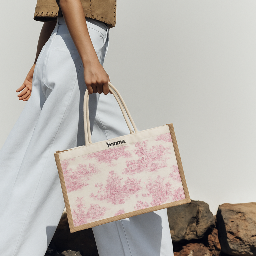 Sac toile de Jouy rose – Collection Rose Antique